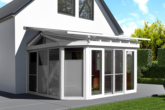Our conservatory awnings are made to measure and are available with multi point fixings, spreading the weight and forces from the wind across the entire roof and also onto the wall structure when required. ALL the awnings are electrically operated as standard with multiple control methods available, including weather and temperature sensors.