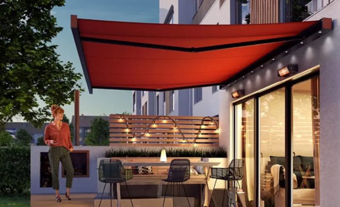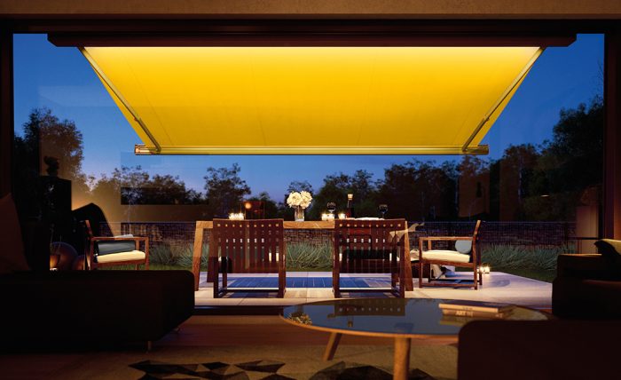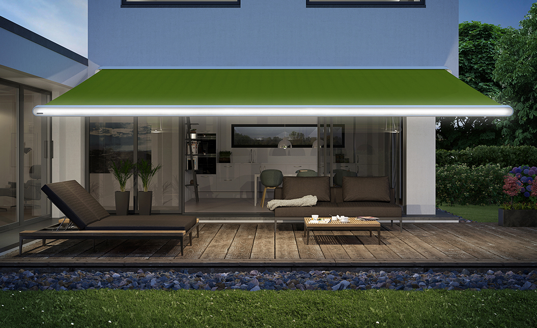 It isn’t maybe obvious to assume LED lighting options in an awning, but when you place an awning cassette of considerable size high up on a wall to provide shading for your outdoor area, then adding lighting for the darker months and evenings seems an obvious benefit.
