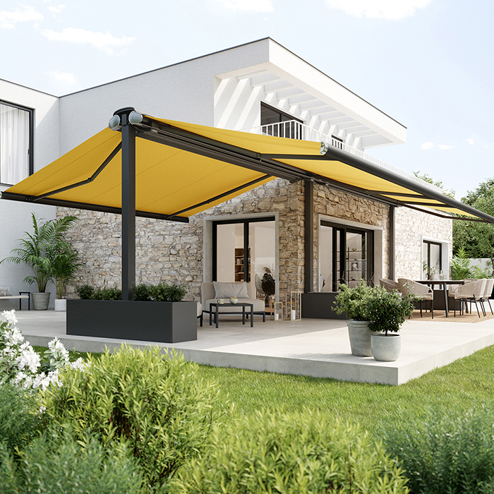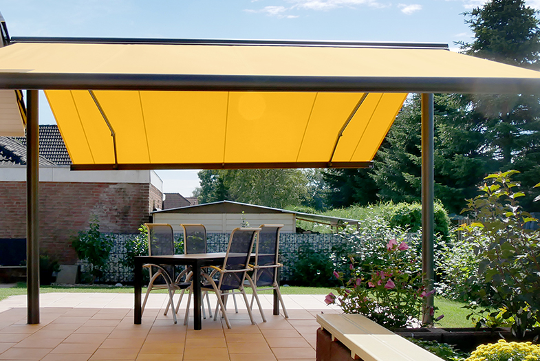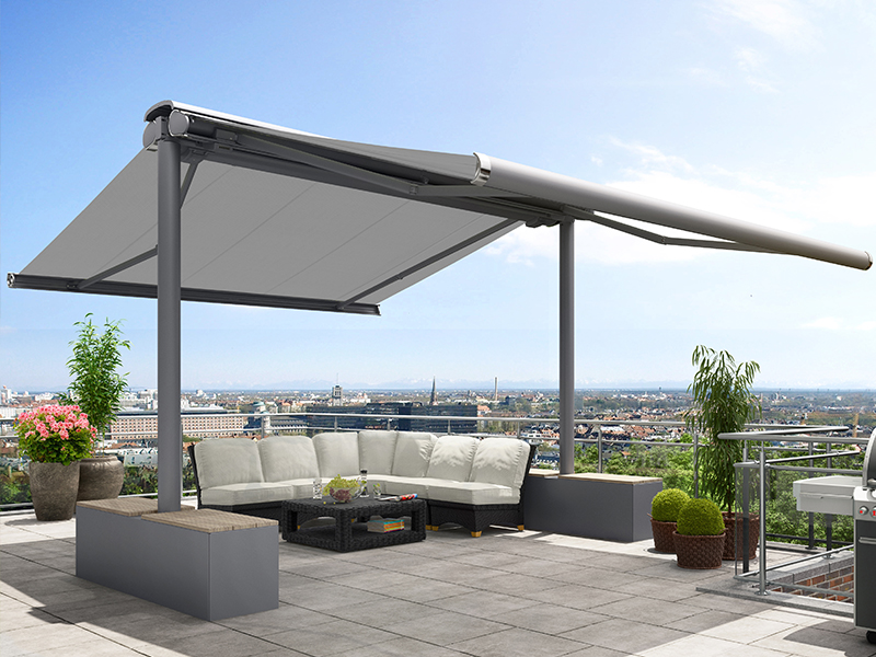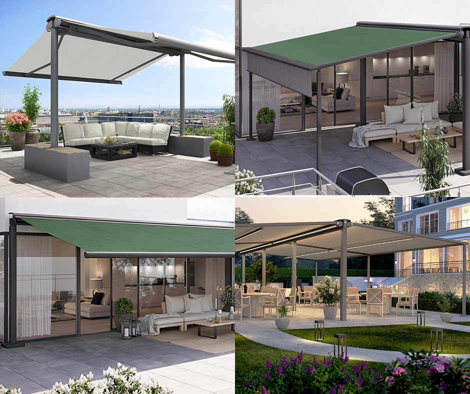 Great examples include the Markilux Markant, the KE Isola and Plan ranges and the Lewens Positano. All have small variations on how rainwater is dealt with on the canopy when in use.