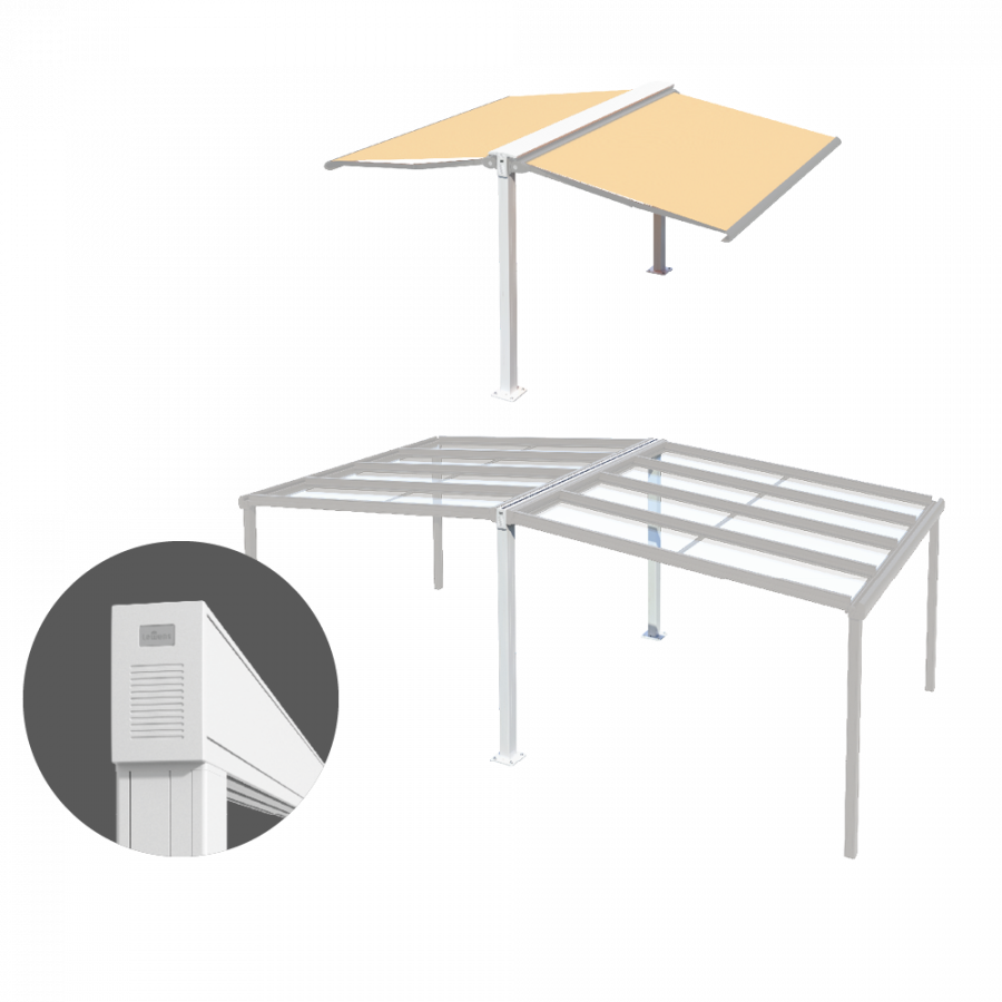 You have a Syncra ‘Uno’ and a Syncra, depending on whether you are fitting an awning or pergola to one side or both sides to double the size of the system