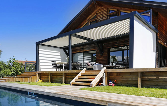 Their bioclimatic louvre pergola systems have been designed in the Isère valley, in the foothills of the Alps. Where their research, development and quality assurance teams work daily to innovate anticipating trends and working respectfully with nature.