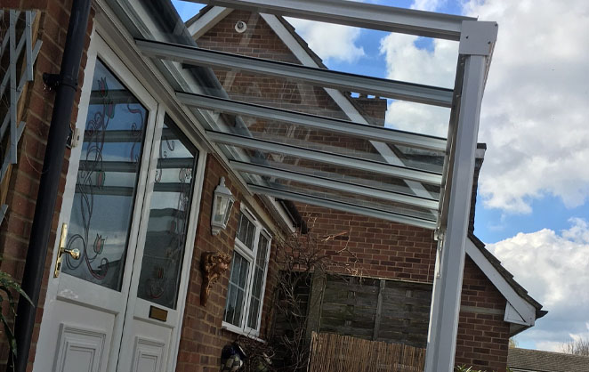 In this instance, the veranda was designed to offer cover to a bench outside the front of the property, intended to be a space for cleaning the family dogs after a potentially muddy walk. This particular installation demonstrates that the versatile G6 Samson Glass Veranda can be installed at the front of a property, not just as a rear awning.