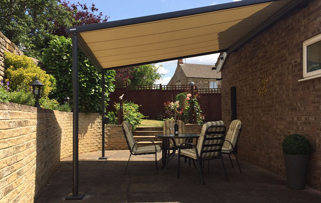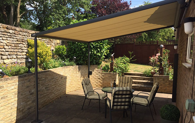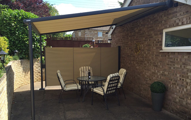 This Markilux Pergola retractable awning and Markilux 790 side screen combo were installed by Samson for a delightful couple from Market Harborough in summer 2015.