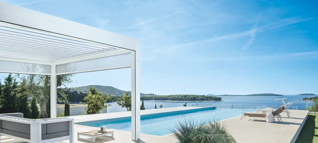 With a broad range of systems, the options are enormous. From giant Pergotex retractable roof systems which can filled in, and Glasoase systems that make excellent glassrooms that lean to an existing wall or structure of your house, to Med Twist and Varia systems which contain stunning louvred roofs and can be stand alone systems.