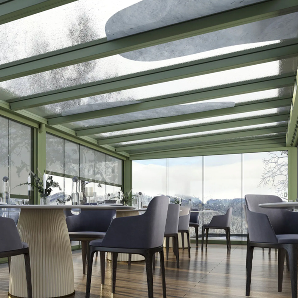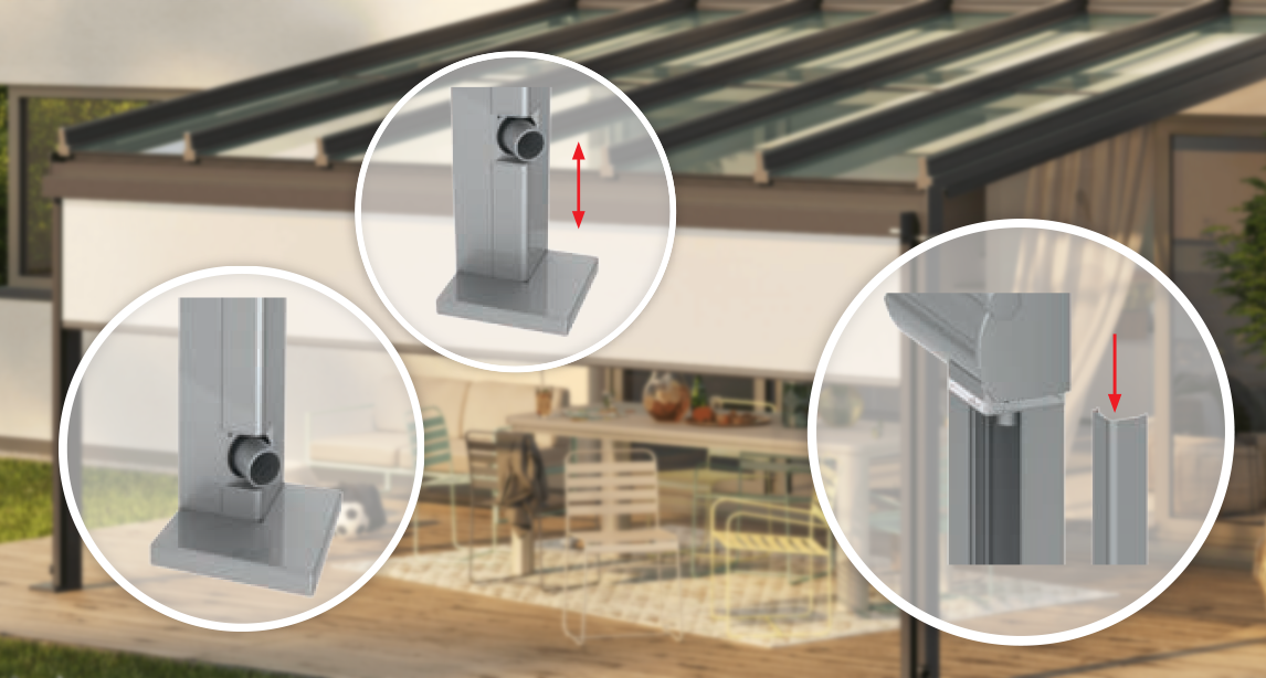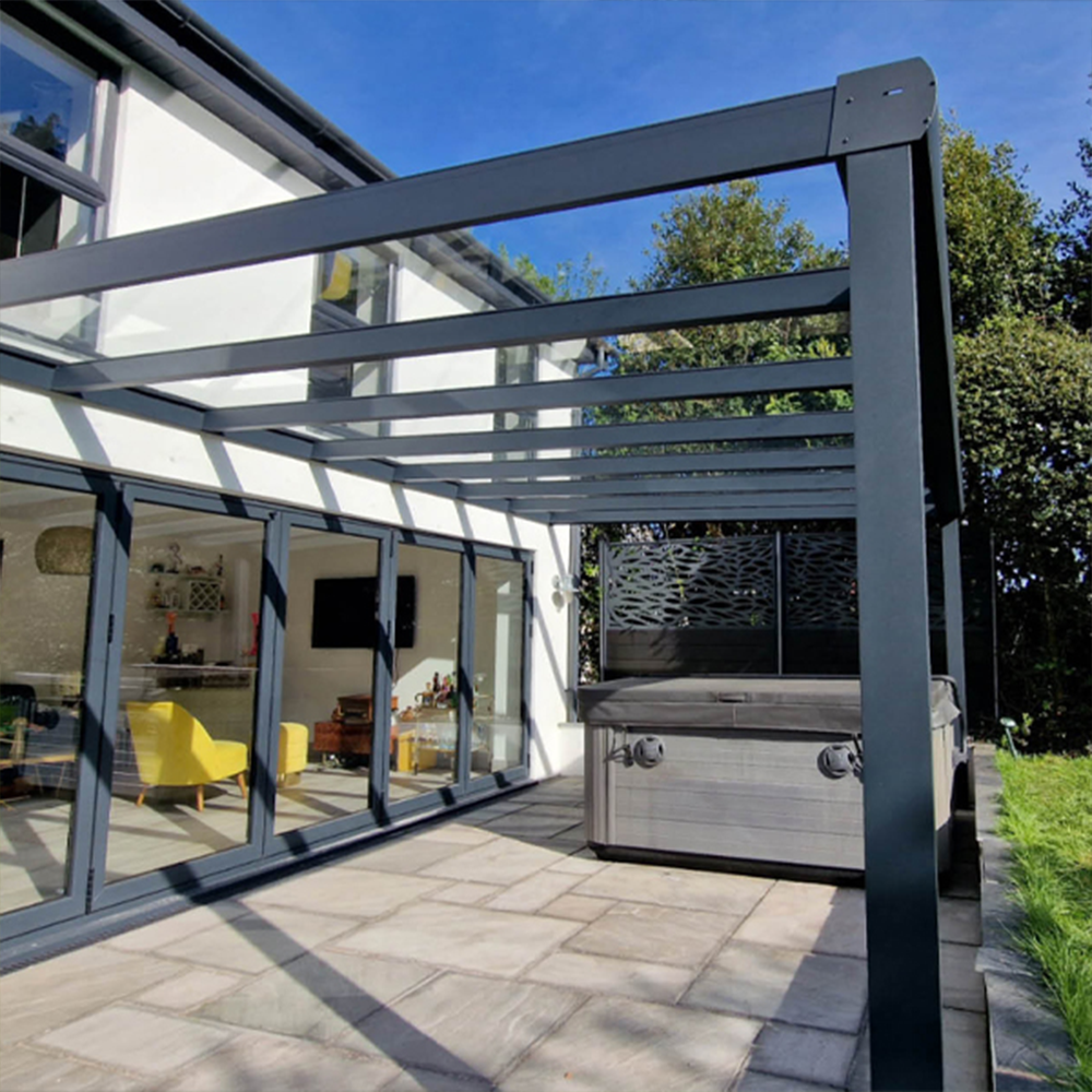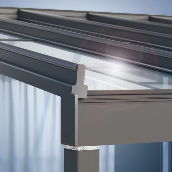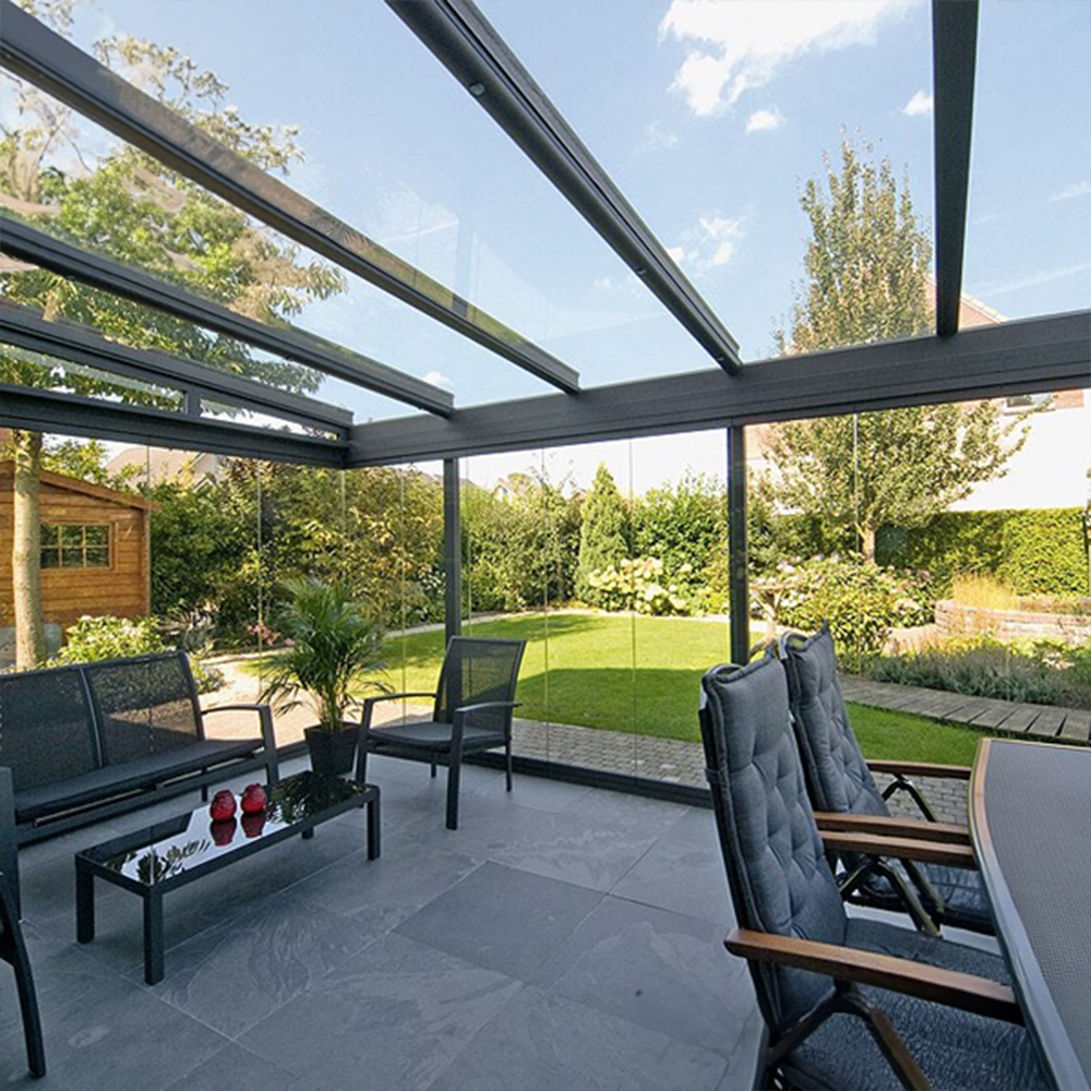 A practical glass overhang, extending beyond the posts, not only provides extra rain protection but also enhances the aesthetic of your veranda. This additional glass projection creates a sleek and modern visual element, giving your outdoor space a more spacious and open feel.