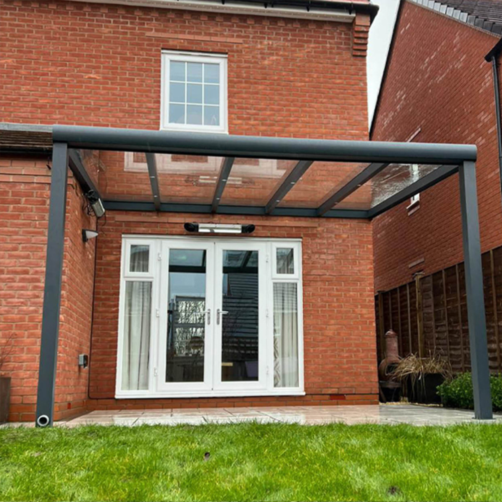 For example, if your patio is 3 meters deep with a garden or lawn beyond, you can position the posts at the edge of the patio (3 meters) and extend the glass roof by an additional 500mm into the garden. This clever design maximises your sheltered area without needing additional support posts.