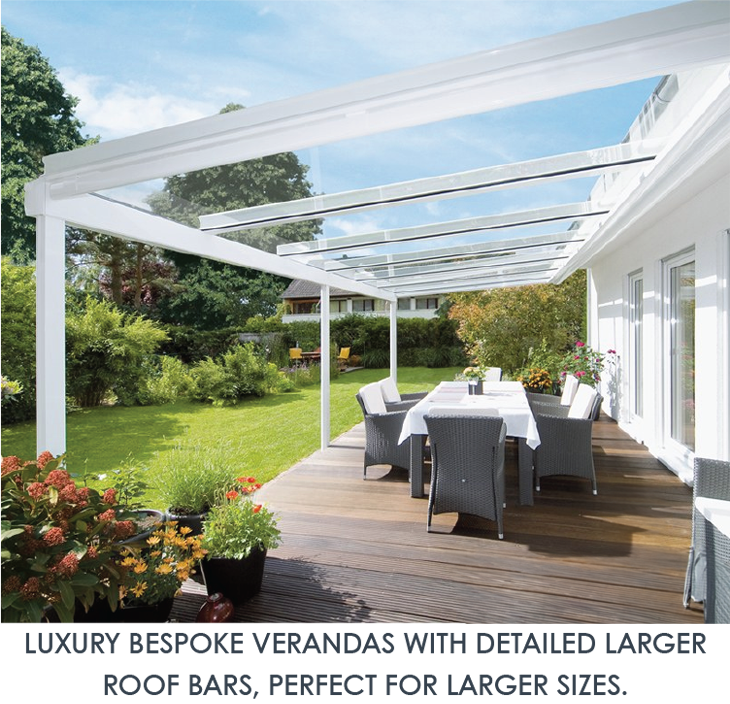 Bespoke shapes are only possible with a handful of models and always cost more than the standard lean to, sloping, wall mounted models, which have become the standard UK veranda offering.