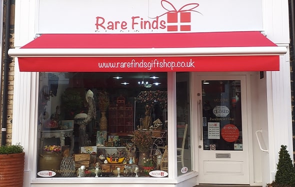 High quality Weinor Cassita full cassette awning to provide shading and advertise this gift shop in Rugby, Warwickshire