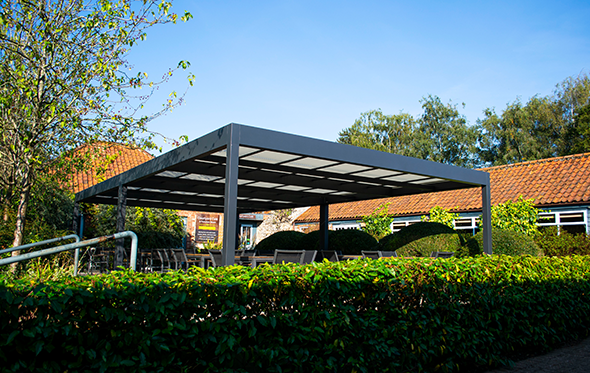 A solution was needed to offer accessible, controllable sunshade and rain protection for over 25 customers sitting outside. It was vital to complement the beautiful environment whilst guests relax and take a break to enjoy the tranquility of this unique part of Norfolk.