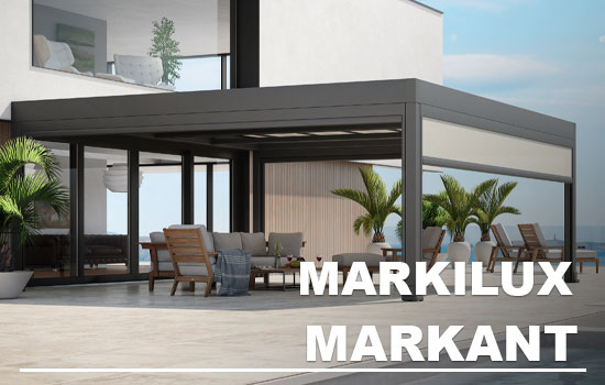 A large commercial grade aluminium structure with 2 independent retractable fabric roof systems built in the Markant offers a lot of coverage with just 4 posts. Up to 6m x 6m.