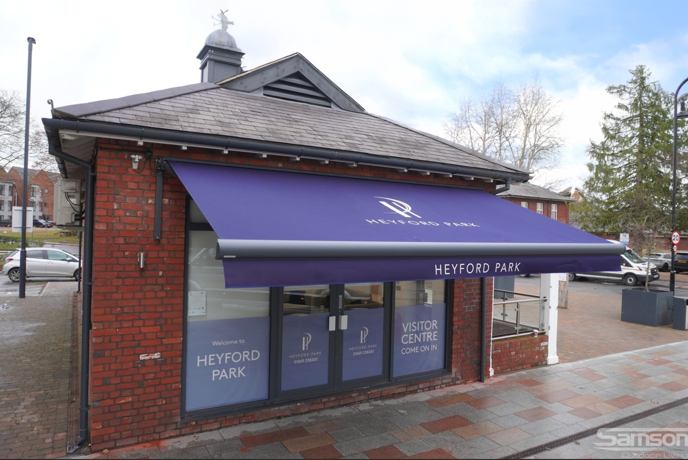 After a consultation with our commercial sales manager, we decided on a bespoke Samson Awning that would provide shade cover while complementing the estate office modern’s style.