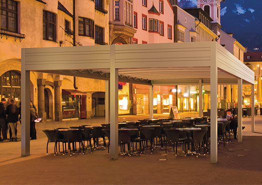 The lean to version is the perfect extension of your premises onto the outdoor area and particularly effective outside on terraces and patio areas where there is a large direct access from an adjacent room.