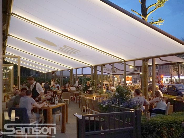 Comfortable, clearly defined outdoor areas are used more, and for longer. With options for heating, lighting and wind protection, Samson‑installed retractable canopies allow guests to enjoy an outdoor atmosphere without sacrificing comfort, which supports higher dwell times and spend per head.