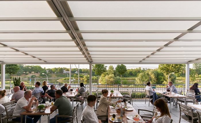 With a retractable roof and optional side elements, a single area can serve multiple purposes throughout the day. Open the roof fully for open‑air dining when conditions are ideal, partially extend for late‑afternoon sun, then close and lower side screens or glass walls for evening service, private events or poor weather.