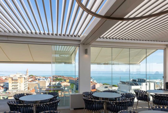 Commercial specification bioclimatic pergolas will offer larger profiles all round, greater rainwater drainage capacity, rotating blades which rotate up to 170 degrees to give air flow and sun shine ingress in 2 directions and larger sizes and more colours to choose from.