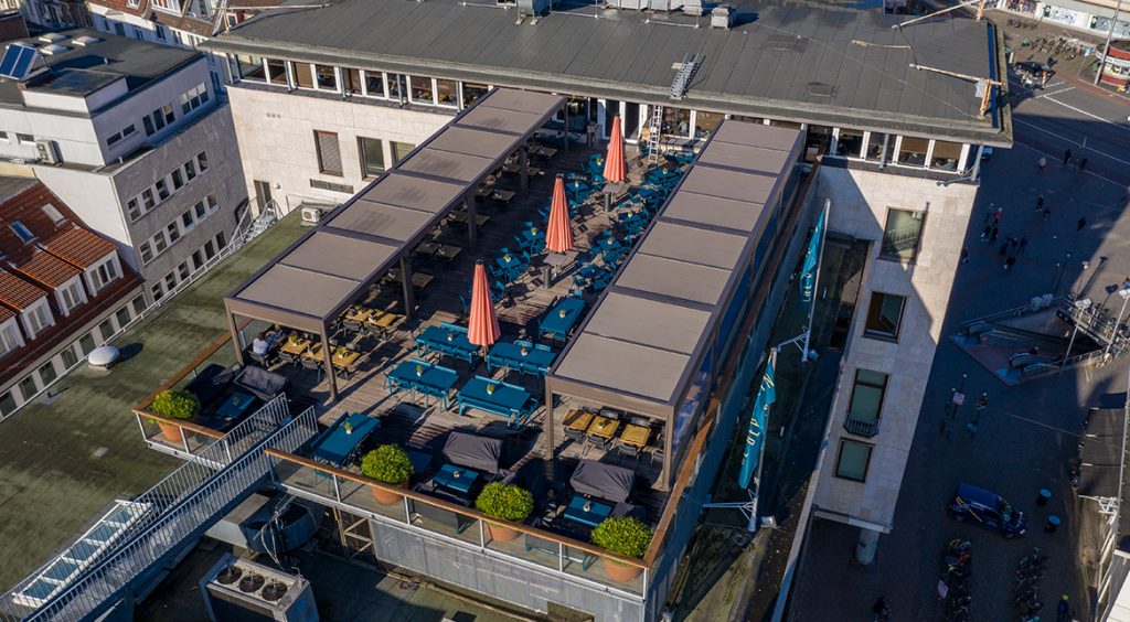 We have worked on many commercial projects since 2007 and these include sectors such as Hospitality, Education, Sports Facilities, Industrial Buildings, Public Spaces and Commercial Offices. Covered all year weather protection on building roof tops perhaps provides the best examples where wind ratings and general commercial specification and build are most important and necessary for:
