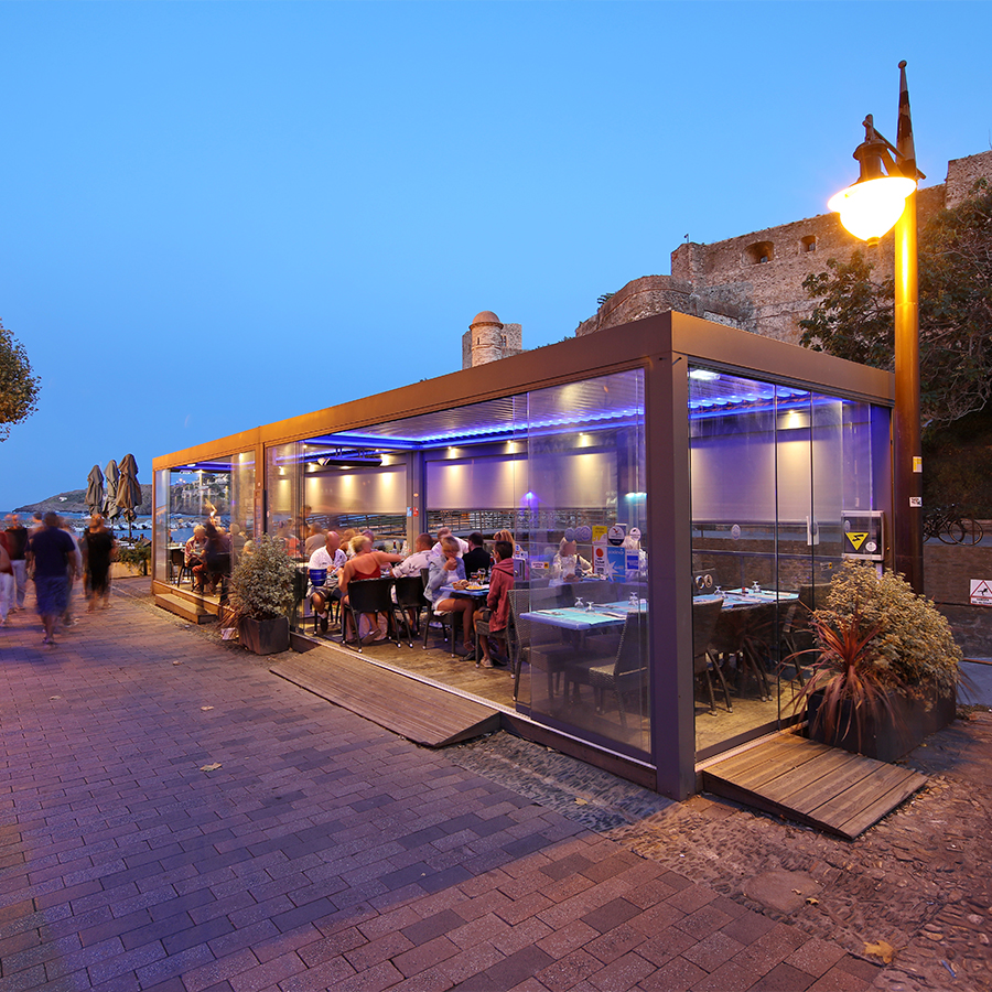 As the roof sections are either polycarbonate or glass the natural light levels are kept and the systems are perfect for rain protection all year round. It is possible to include retractable fabric blinds for partial or full sun protection for the hotter months.