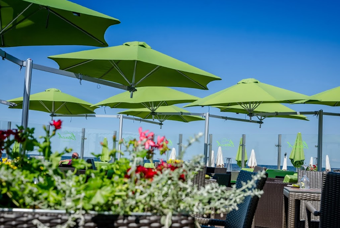 Paraflex umbrellas have a modern, sleek design, are robust and very easy to handle and adjust during the day.