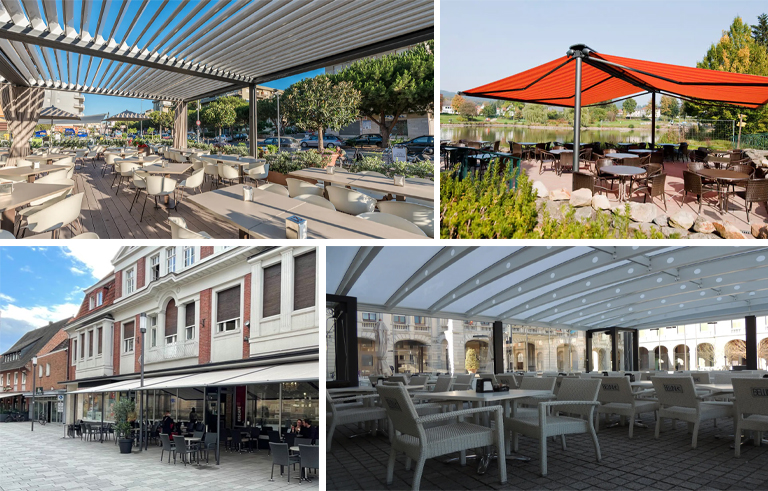 Awnings have been used for centuries to protect from the sun and help keep spaces cooler, but also correctly specified are used for rain protection too, creating outdoor space where staff and customers can rely on protected seating and space for many more months of the year.