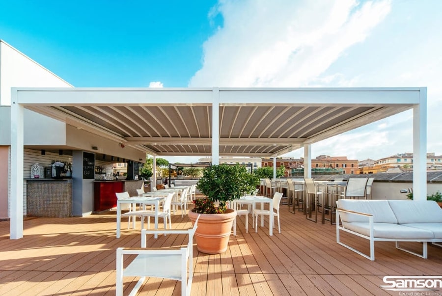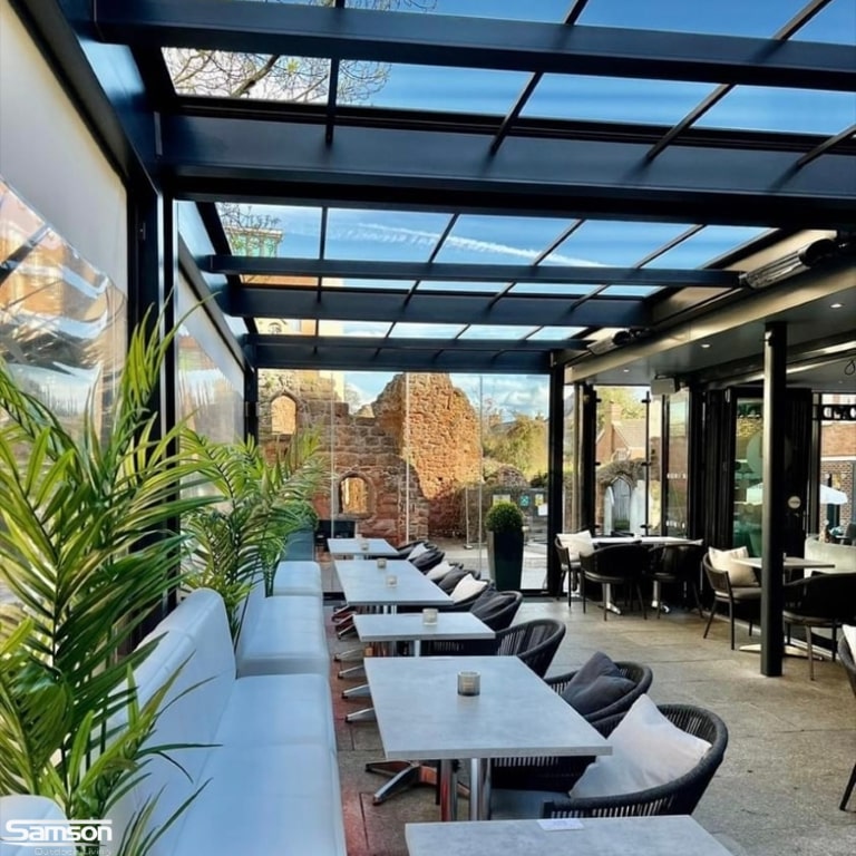 Many of the solutions Samson Awnings can provide for your establishment require careful planning and obviously in some cases local planning permission too, however most systems do not require any major building works or traditional building foundations like an extension would require. Many systems can easily be considered temporary structures too. Older hotels and pubs can have many issues with building heights and suitability of older walls so stand alone structures can help here bu also be considered temporary for planning purposes.