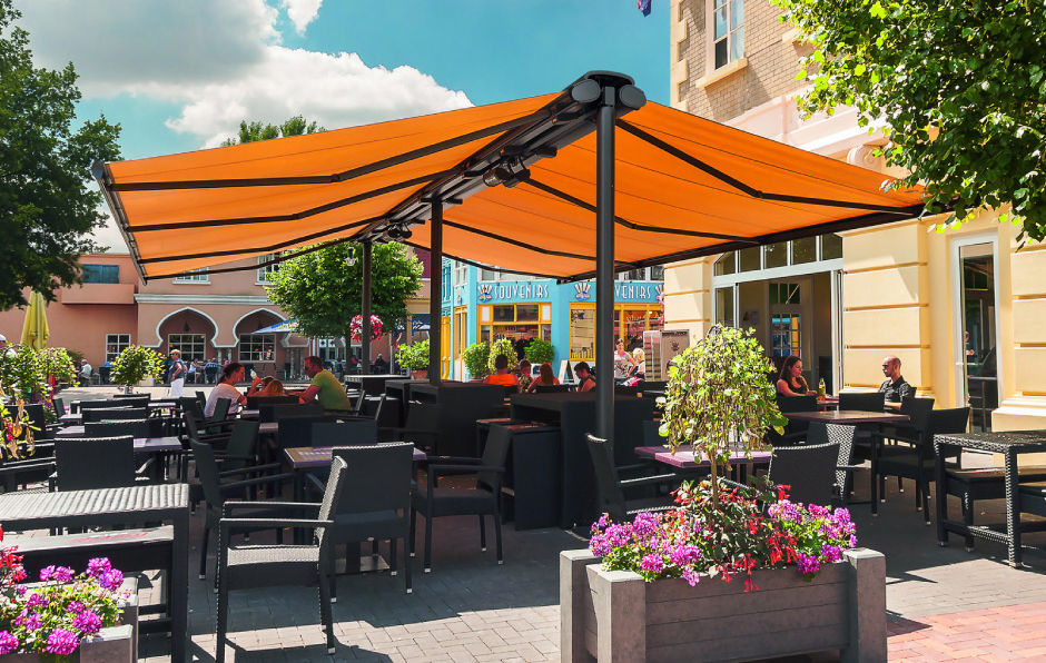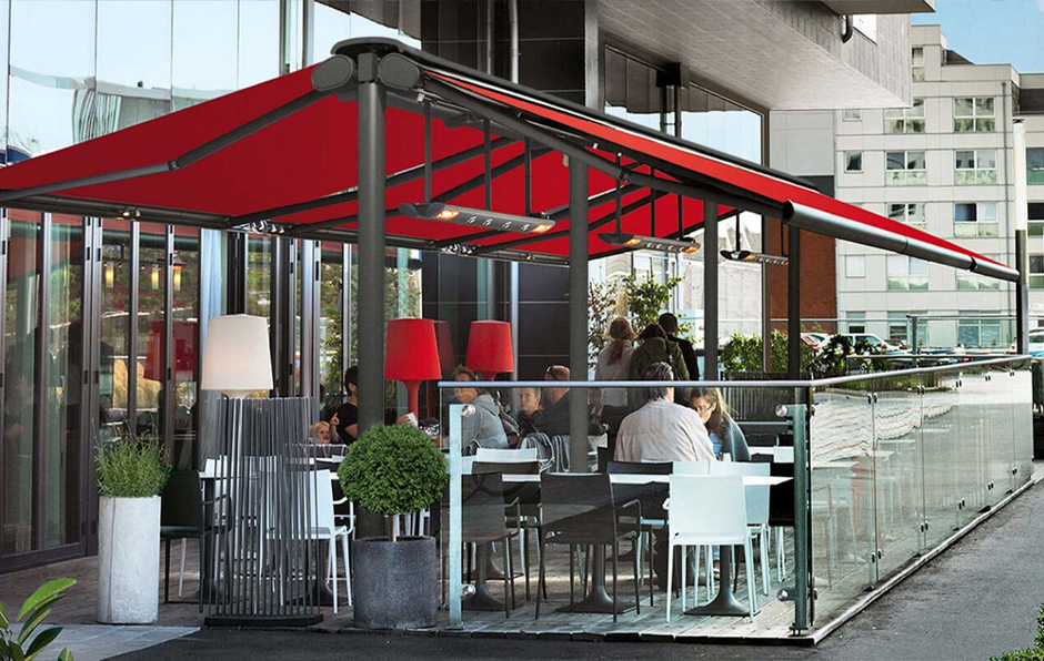 There are formulas to show you how much extra revenue you can take if you plan your additional space and seating based on your average customer spend. We have many customers telling us their new outdoor space paid for itself within a few months, let alone the extra interest created by often making a new, more exclusive space in your establishment, maybe even for reservations only?We offer retractable awnings and when the space to cover is larger than a folding arm awning can deal with, we can progress up to retractable fabric pergola systems or even larger aluminium structures with fabric, glass, polycarbonate or louvered rotating blades.