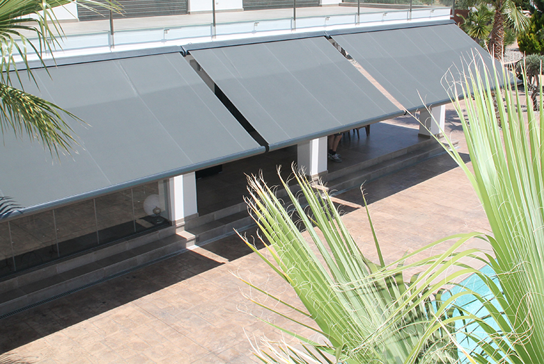 than a folding arm awning can deal with, we can progress up to retractable fabric pergola systems or even larger aluminium structures with fabric, glass, polycarbonate or louvered rotating blades..