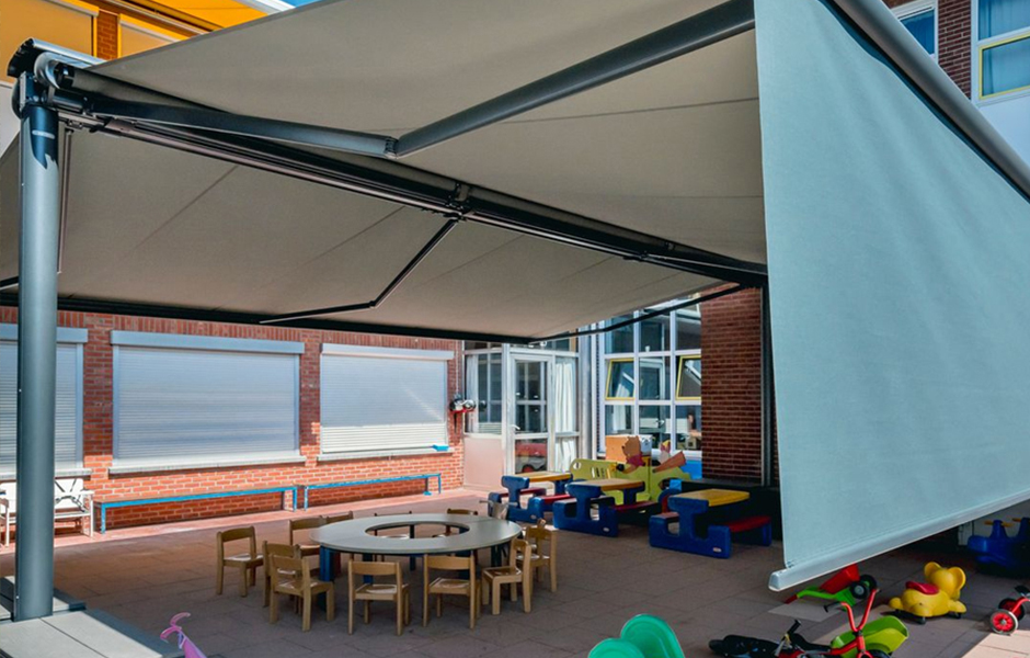 Samson Awnings have worked with many primary, secondary and specialist schools, universities, colleges and sports facilities over many years. The harmful effects are better known than ever on intense UV exposure on younger skin. Our fabric awning and canopy solutions will all offer up to 100% UV protection with the fabrics where required.
