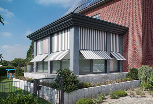 The range of Markilux vertical blinds we supply and install can enable windows and patio doors to be opened whilst the blind is lowered for protection from the elements.