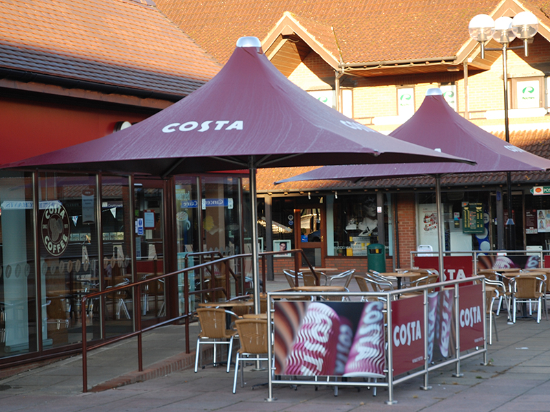With lights and heaters and the pole mounted table, Vortex parasols are a perfect addition to any outdoor area in a bar, restaurant, cafe or club.