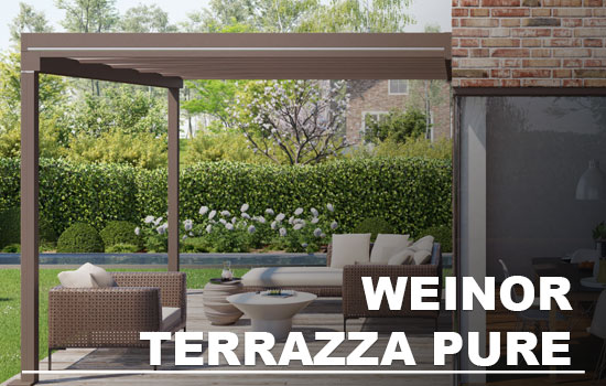 This corner installation of an aluminium ‘Pure’ structure gives a fantastic visual finish but also includes a hi tension zip electric vertical blind to provide shade and wind/rain protection when required. With the 2 sets of doors from the house this really does act like a veranda in its functionality and provides protection for both sets of doors, even when open in the summer rain. This private property in London now benefits from simple, robust and purposeful additional living space, to be used most of the year round and adding extra protection to enable the existing doors to stay open far more too. The Pure is one of the cleanest looking glass canopies we offer in terms of visual appearance and even with the sides enclosed there is no need for additional glass or material above the openings as required on angled structures… The sparkling iron metallic paint textured finish is a popular choice and one of the most durable paint finishes for any aluminum outdoor structures.