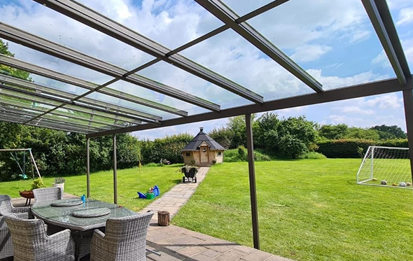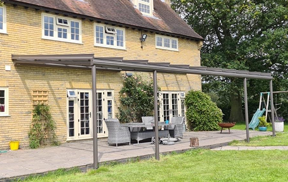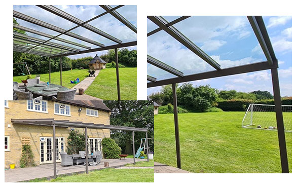 Private home in Essex now benefitting from a large outdoor covered space with one of our glass verandas, with electric underglass awnings and LED lighting for the evenings.