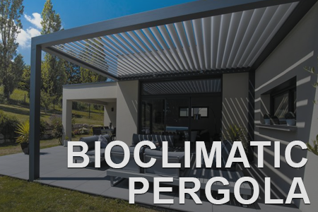 A ‘bioclimatic pergola’ is a UK term to describe a very innovative aluminium structure which uses multiple, motorised, aluminium blades in the roof canopy section.