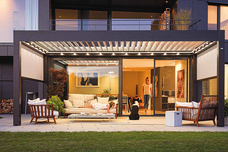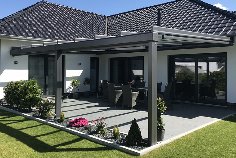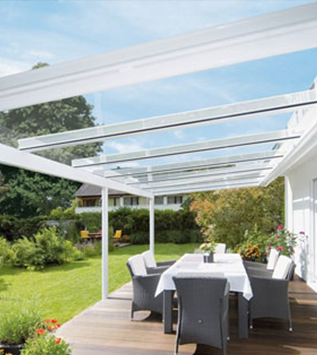Most products are made to order and developed and manufactured in Northern Europe to ensure the very best levels of resistance to our variable climate. Many products are modular enabling you to start with a basic roof cover and further enhance later on to a fully enclosed ‘outdoor room’. Most products incorporate electrically operated retractable systems for the effortless control of shade and air movement using remote handsets or smartphone apps. We are a family run business with over 35 years trading in domestic products and do not employ direct selling tactics.