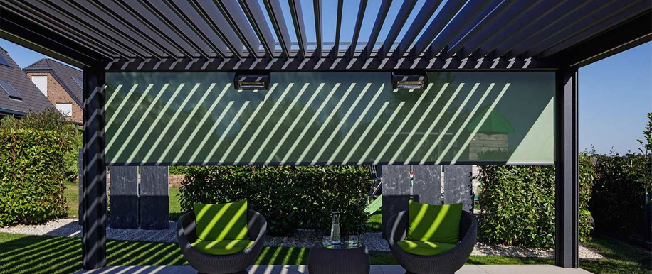 *Most customers will have at least one side fitted with an enclosure product and usually on a side which has the prevailing wind or greatest exposure. Any of the products can be fitted at a later date if you wanted to experience some time with your new pergola system before deciding.