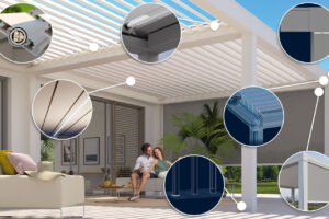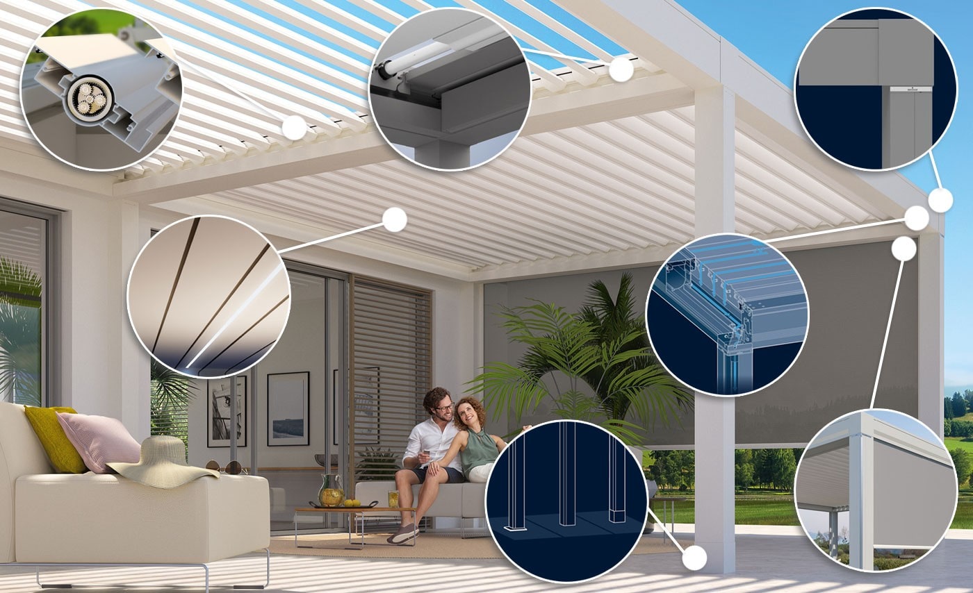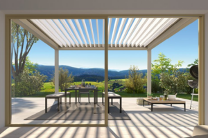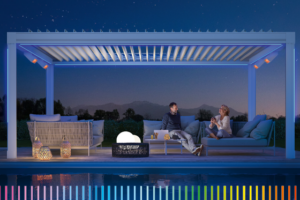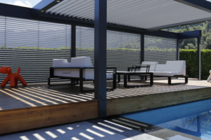 A bioclimatic pergola system is one of the ultimate outdoor structures providing control over the sun, wind, and rain for most of the year round. You take control and you decide on the amount of sunshine, warm or cool breezes you let into your outdoor dream space throughout the day and nighttime.