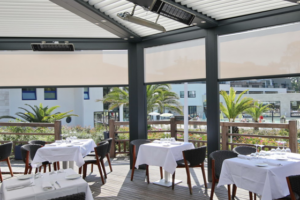 To create the best chance of a balanced atmosphere underneath and inside your new outdoor room then you will need to prevent the cooling effects of the wind. As the afternoon merges into the evening we all know what those cooler breezes feel like outside. The various retractable and fixed products available to close in one or all the side will make an enormous difference to the time you can spend in comfort outside. Just like the windbreak on the beach, stopping the wind will make things far more pleasant in all temperatures.