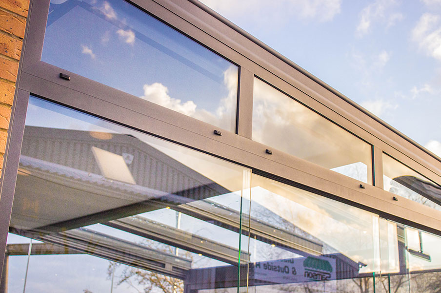 You also now can choose totally flat roof aluminium structures incorporating angled glass within the roof system. A flat roof can suit many properties larger and small and one benefit is not having any angled sides to deal with when it comes to integrating the sliding glass doors.