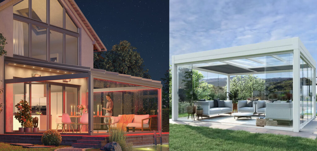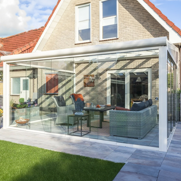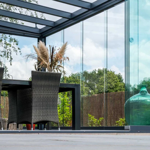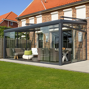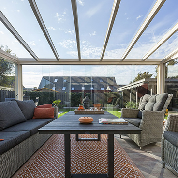 Just as with the aluminium verandas, the glass outdoor rooms will have different design styles, often subtle, but depending on the final size, very pronounced in many cases if you study the actual roof and profile shapes and sizes.