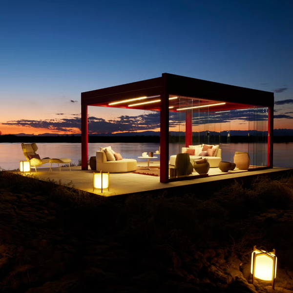 Create your perfect outdoor room with an electric rotating aluminium louvre bladed roof.
