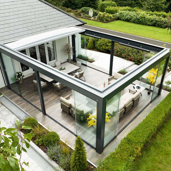 The choice of fixed, sliding or bi-folding glass sides gives total flexibility to how you build your glass room with manual or electric blinds for the roof and sides also available.