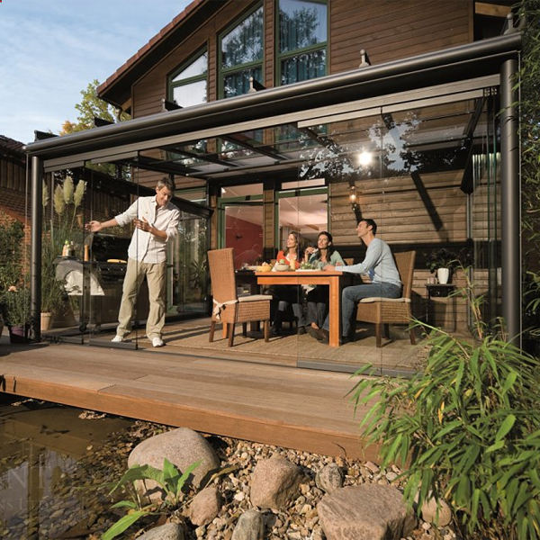 Merge all the beauty of the outdoors and your own garden into your home with an elegant glass garden room. Natural light, controlled air flow and an almost frameless panoramic view through the various sliding glass wall options available.