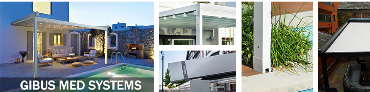 The Gibus Med Systems are a range of strong, robust, solid terrace covers with a super strong retractable roof system which offers highly effective levels of sun shading.