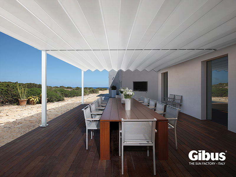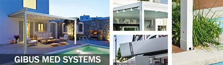 The Gibus Med Systems are a range of strong, robust, solid terrace covers with a super strong retractable roof system which offers highly effective levels of sun shading.