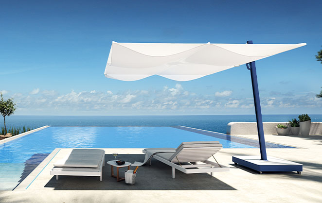 The Umbrosa’s Spectra UX collection: 5 unique models based on 4 unique stories. Each model radiates a beautiful sense of colours, fabrics and materials, combined with ultimate functionality and ergonomics. The umbrellas contribute to the look and feel of any outdoor setting. The collection was created thanks to the collaboration between several designers, stylists and creative minds. In order to have the concept tested and optimized, we introduced the first model on Salone del Mobile in 2019. Using our fan’s feedback we worked hard on the concept and can now proudly present a unique collection. These models are inspired on the clean and refined architecture, the liveliness and unpredictability of nature, the warmth and softness of the Mediterranean culture and the refreshing feeling of the sea and the waves.
