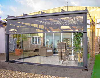 Our Outdoor Living team welcome you to visit our comprehensive showroom which is one of the largest in the UK, since 1992 at the same location. We have inside and outside working models of awnings, pergolas, glass verandas, retractable canopies and umbrellas. We also have a large range of entrance and garage doors as we are part of the Dovegroup and have doors, security products and electric gates in our portfolio. Our range of products that you can use for yourself and relish in the joy of outdoor living are from our trusted, impressive manufacturers such as Markilux and Weinor.