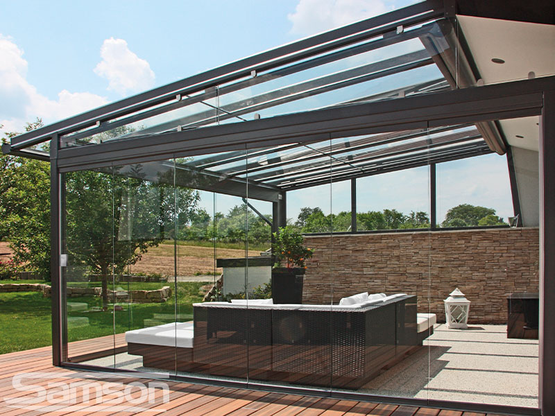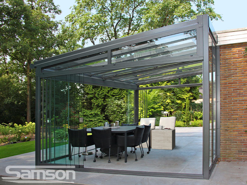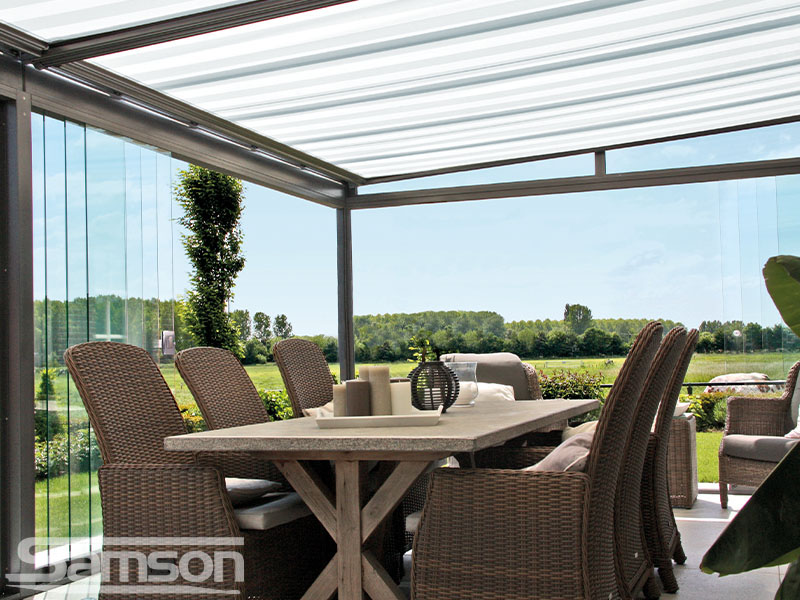 Samson Awnings offer a vast range of fixed or Retractable Awnings, commercial Retractable Canopies, Glassrooms, Parasols, External Vertical Blinds and Freestanding Structures to protect from the UK weather and extend the use of your outdoor space all year round.