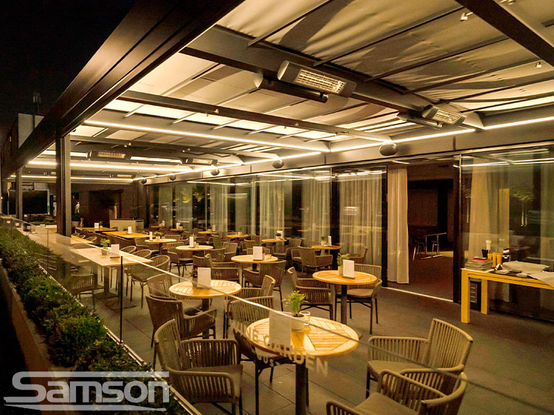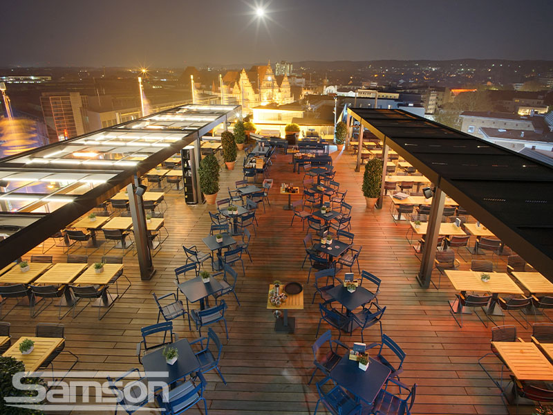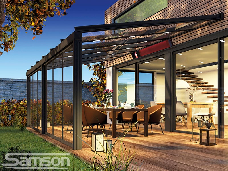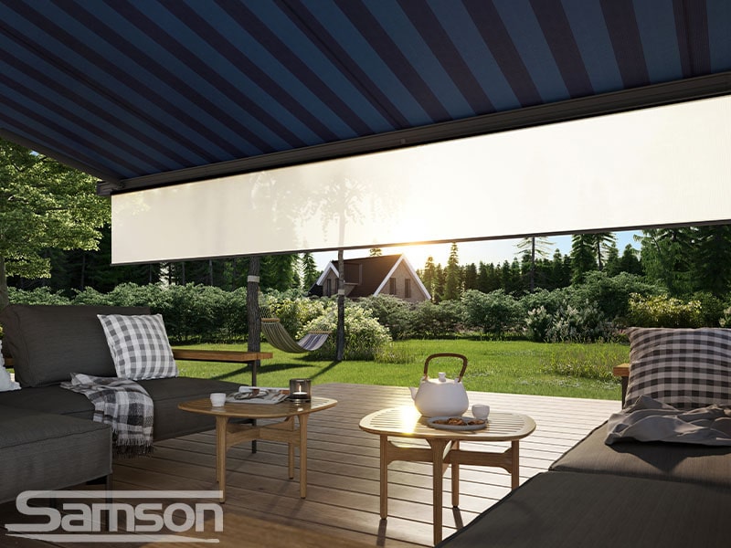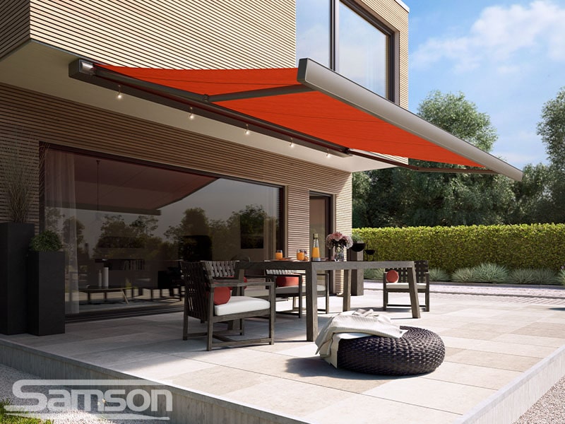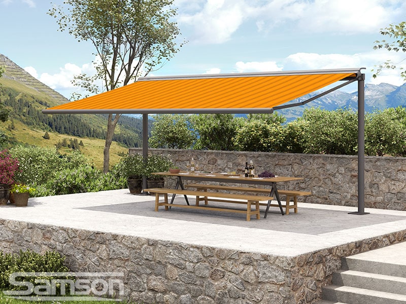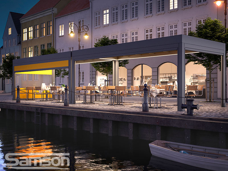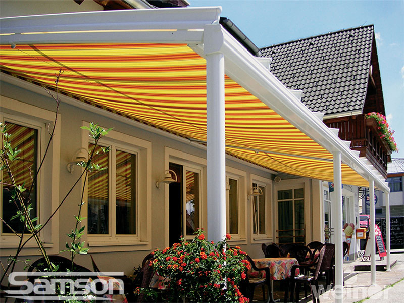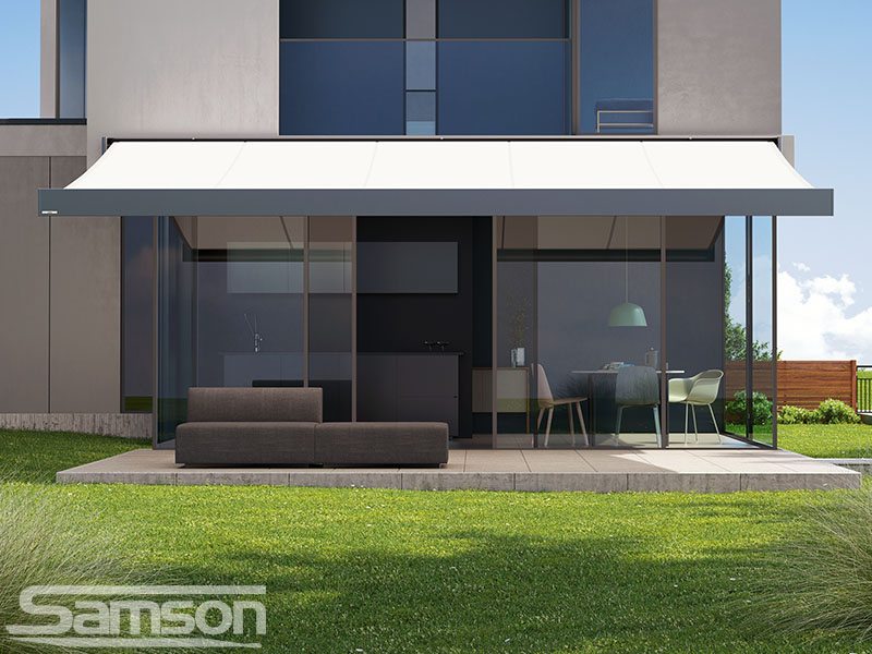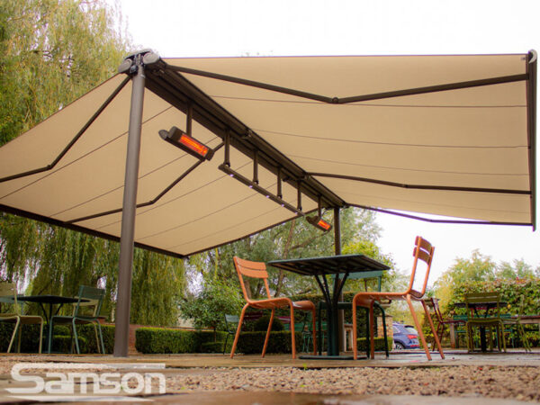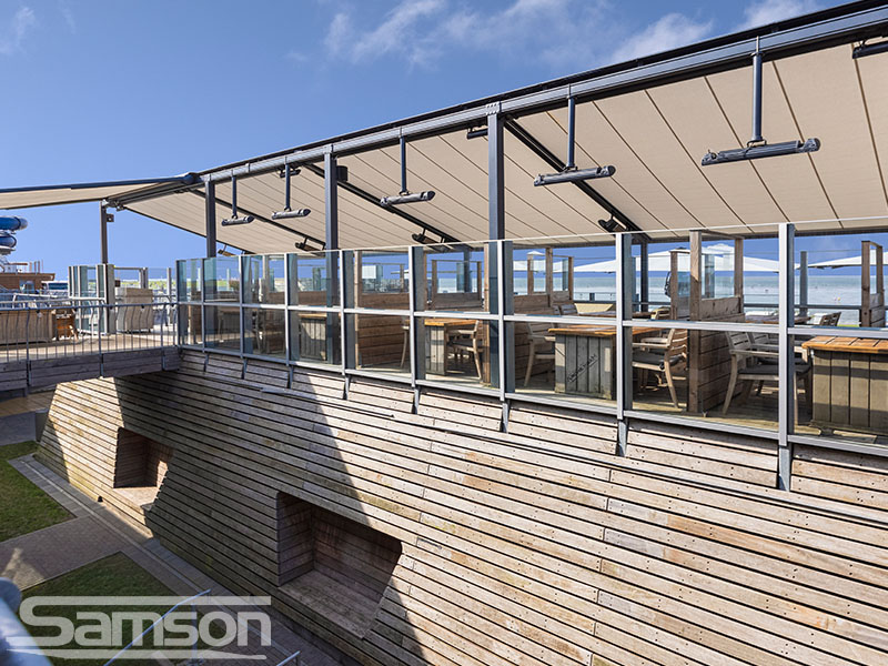 Samson Awnings offer a vast range of fixed or Retractable Awnings, commercial Retractable Canopies, Glassrooms, Parasols, External Vertical Blinds and Freestanding Structures to protect from the UK weather and extend the use of your outdoor space all year round.