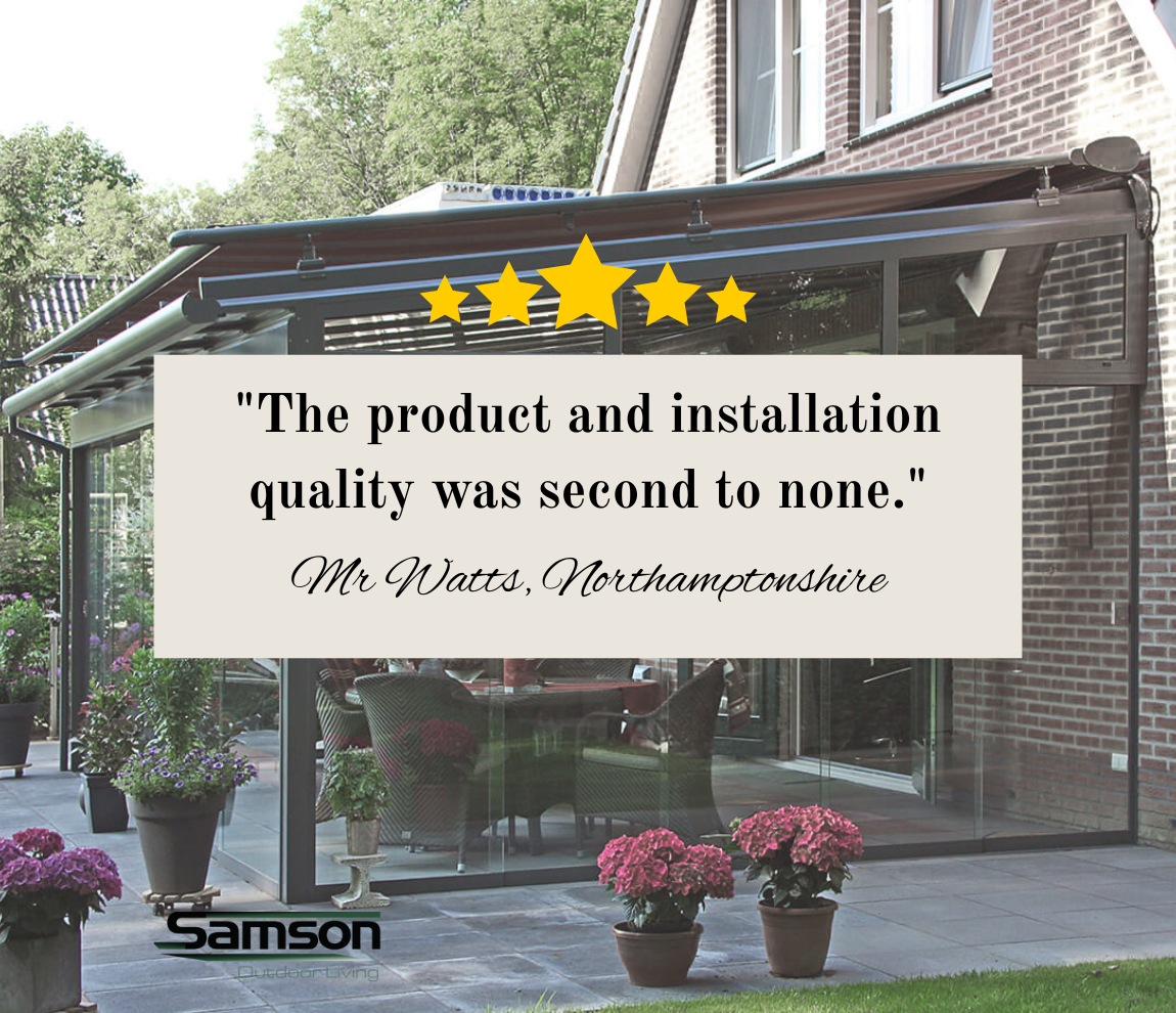 “Very pleased with terrace cover. Very professional installers. Excellent quality of work. Would recommend to anyone.”