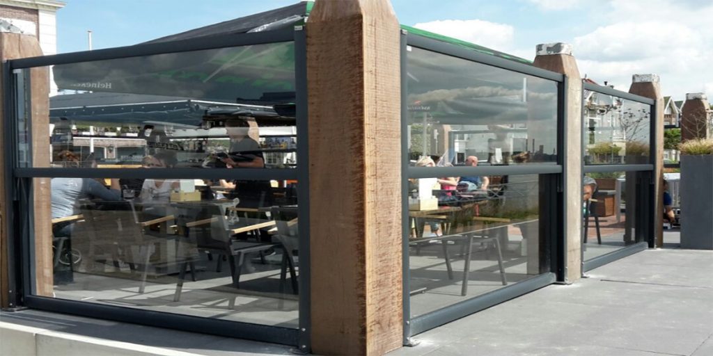 Samson Awnings offer multiple different solutions that can help to create a barrier, protecting you from burning sun rays, chilling winds, and of course, rain. Many of these solutions use fabric, acrylic or other materials, however glass balustrades or panels are clearly the best material for side screens and barriers to protect from wind or rain.