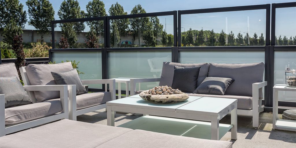 Glass elements are versatile and can be used in multiple setups and solutions, not just to fill in the sides of terrace roof systems. They can be used for glazing on balconies, or as unique and interesting entry ways, or even simply as wind screens.